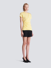 Draped T-shirt with "Lion Head" buttons on the shoulder - Round neck - Short sleeves - "Balmain" embroidery on the back - Long fitted cut - Model measures 180cm and wears a size S - Main material: 100% cotton - Made in Portugal - Item: GF1EF002BD39