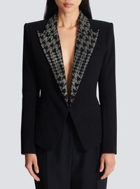 6-buttons jacket - Italian tailored collar in embroidered Prince of Wales fabric - Long sleeves - Structured shoulders - Buttoned cuffs - Welt side and breast pockets - Edge-to-edge fastening - Tailored fit - Model measures 175cm and wears a size 36 - Main material: 100% viscose - Made in India - Item: GF1SE200PD30100% of the viscose fibres used to make this garment come from certified, sustainably managed forests