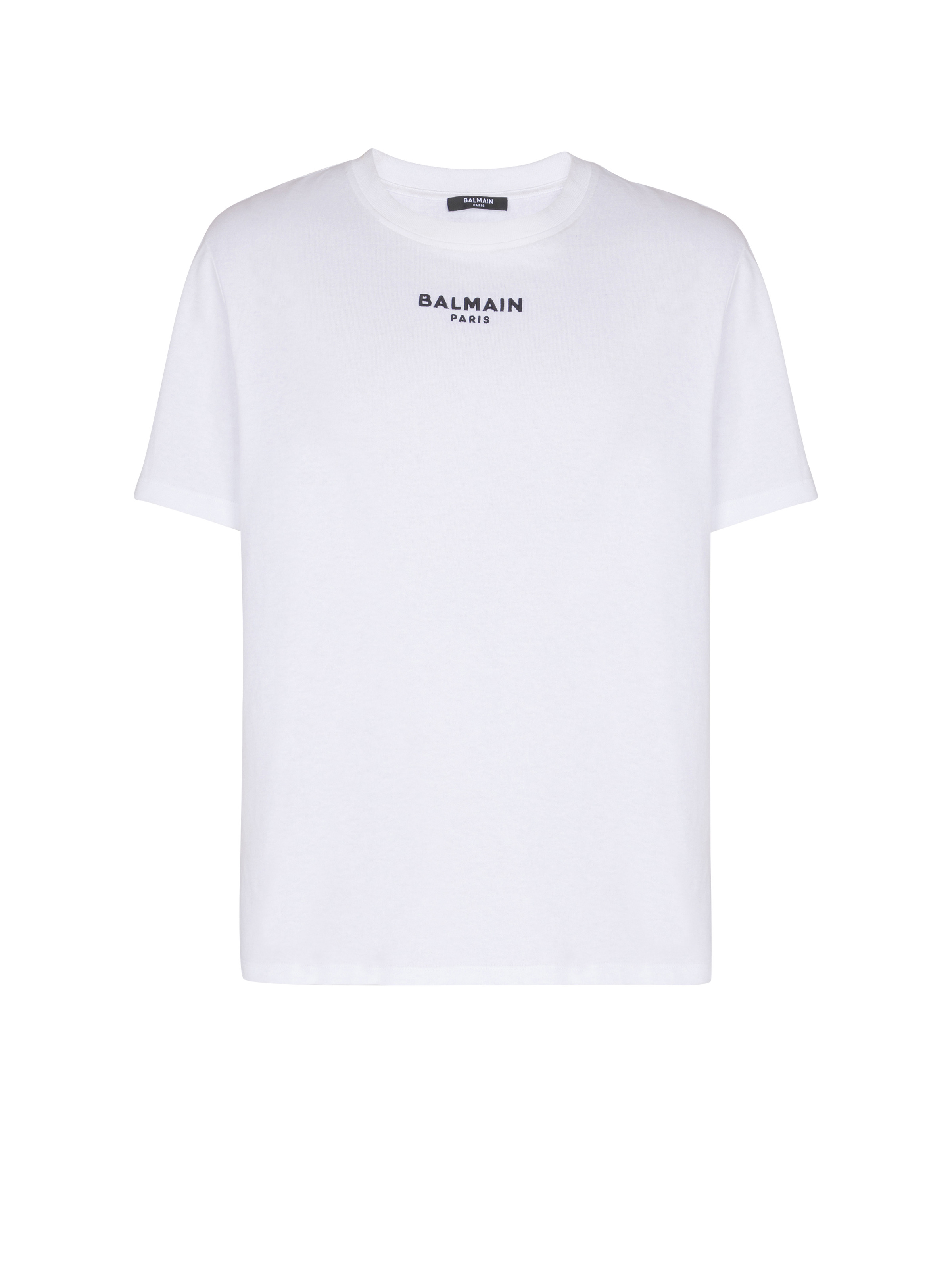 Cotton T-shirt - Round neckline - Short sleeves - Balmain Paris embroidery under the neckline - Regular fit - Model measures 191cm and wears a size M - Main material: 100% cotton - Made in Italy - Item: FH0EG000BD18100% of the cotton fibres used to make this garment are certified and organically farmed