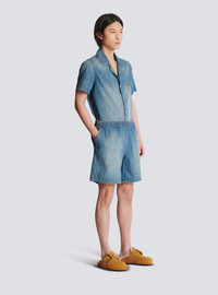 Faded denim shorts - Elasticated waist - Curved side pockets and welt back pockets - Contrasting Balmain Paris embroidery on the back - Contrasting topstitching - Relaxed fit - Model measures 186cm and wears a size M - Main material: 100% cotton - Made in Italy - Item: FH0MA036DG03