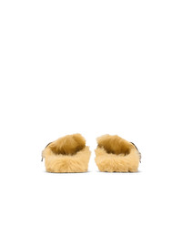 Calfskin leather flat mules with faux fur lining - Round toe - Belted leather style - Golden metal Anthem buckle with engraved PB logo - Contrasting faux fur lining - Leather insole - Leather outsole - Main material: 100% calfskin - Made in Italy - Item: FM1UR373LVIT