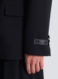 Grain de poudre 1-button jacket - Double satin shawl and Italian tailored collar - Long sleeves - Epaulettes with covered buttons - Embroidered Balmain Paris label - Chest pocket with piping, flap side pockets - Double-breasted fastening with a hidden button - Vent at the back - Lined - Straight cut - Model measures 187cm and wears a size 48 - Main material: 100% virgin wool - Made in France - Item: GH1SM755ME54100% of the wool fibres used to make this garment are sourced from sheep farms that are certified and animal welfare-friendly