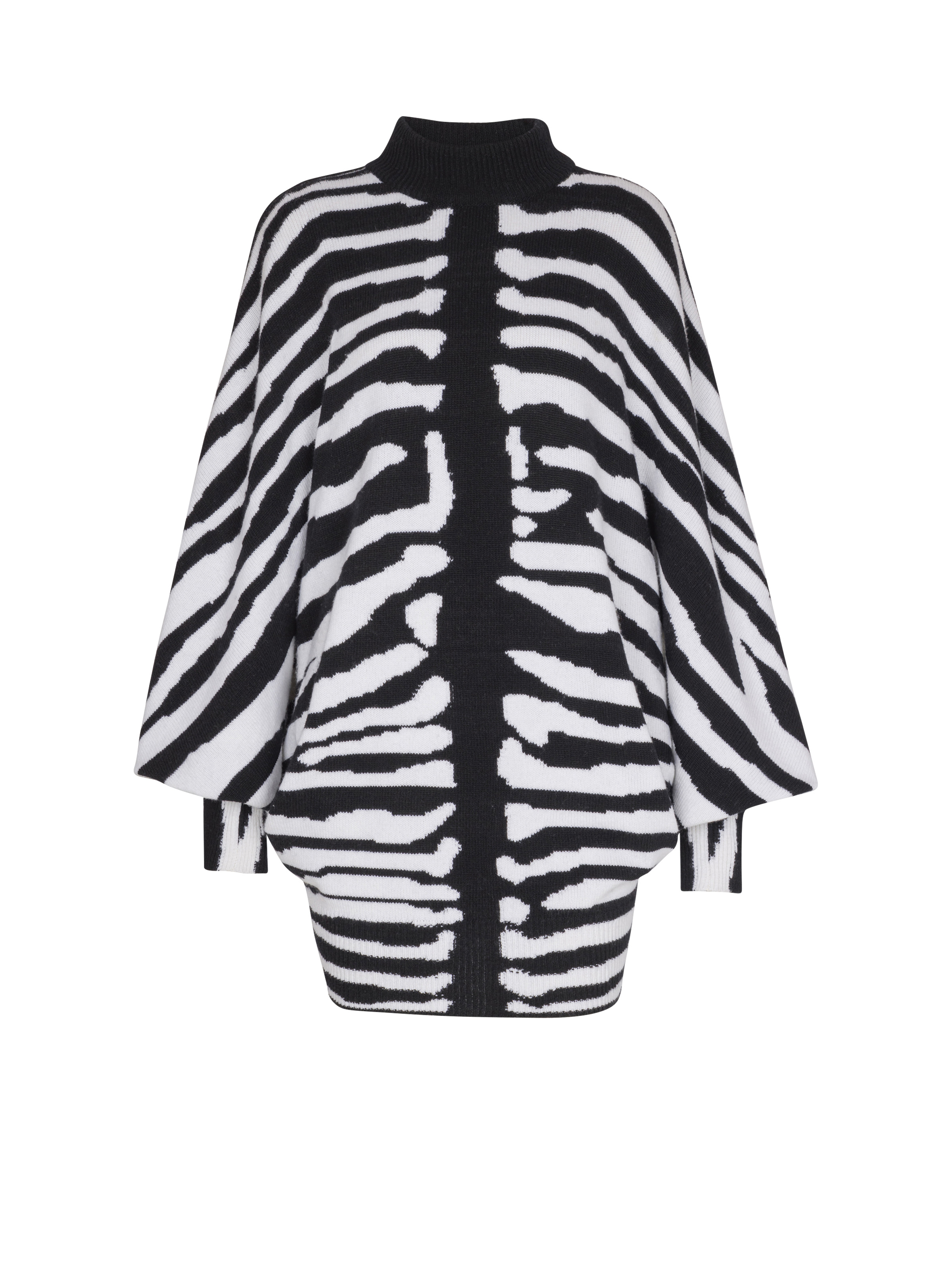 Knit dress with zebra intarsia - Contrasting high neck - Long batwing sleeves - Ribbed edging - Fitted cut - Model measures 178cm and wears a size 36 - Main material: 90% merino wool 10% cashmere - Made in Italy - Item: FF0R9393KJ12