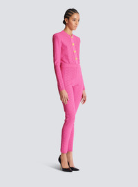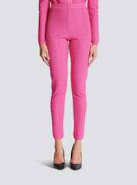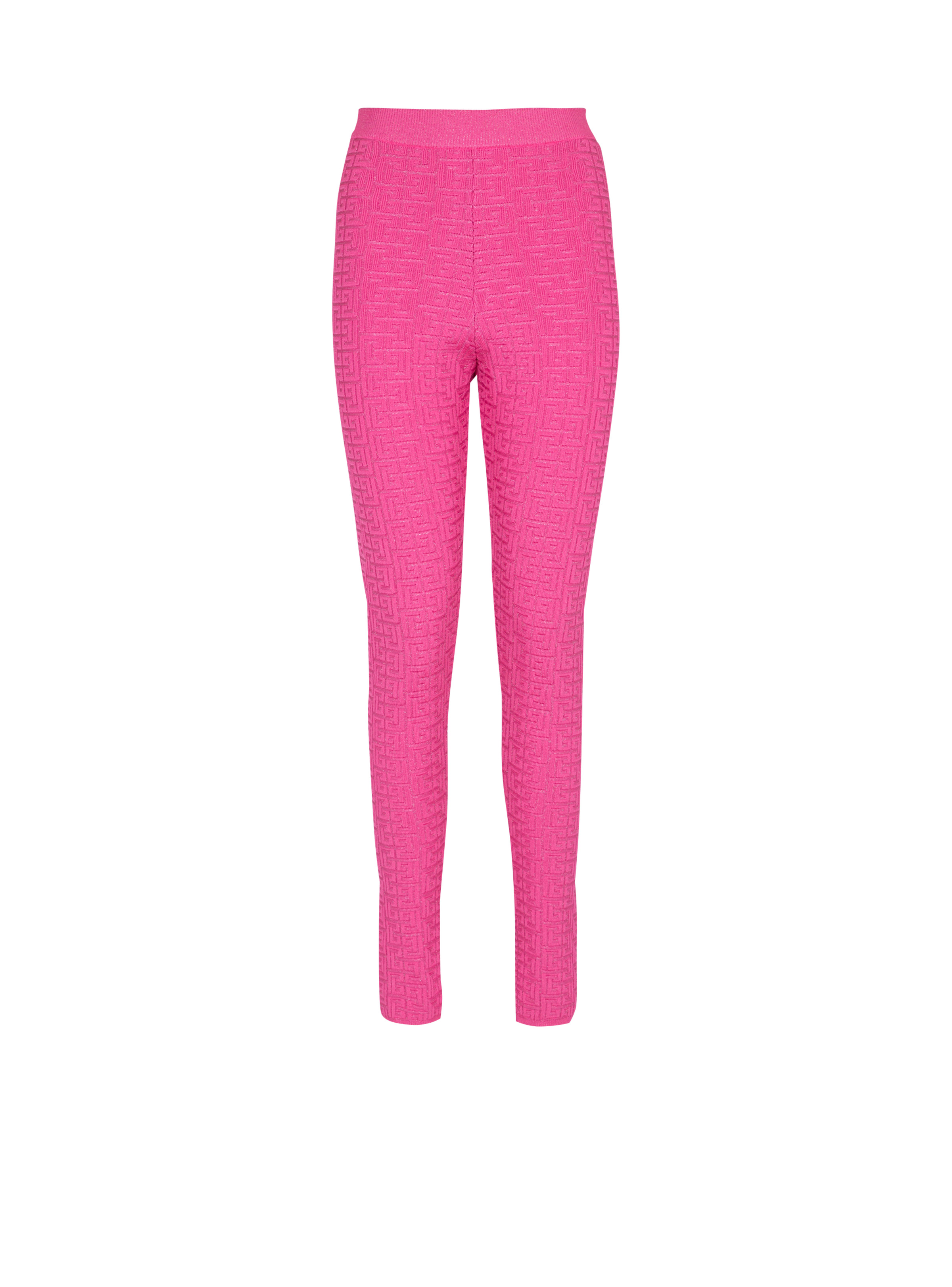 Knit leggings with PB Labyrinthe monogram - Ribbed waistband - Visible gold metal zip fastening on the back with Balmain Paris-engraved slider - Knit with shiny threads - Hem with ribbed trim - Fitted and high-waisted - Model measures 179cm and wears a size 36 - Main material: 68% viscose 18% cupro 9% polyester 4% metallic polyester 1% elastane - Made in France - Item: EF2PD005KG96100% of the viscose fibres used to make this garment are recycled and certified