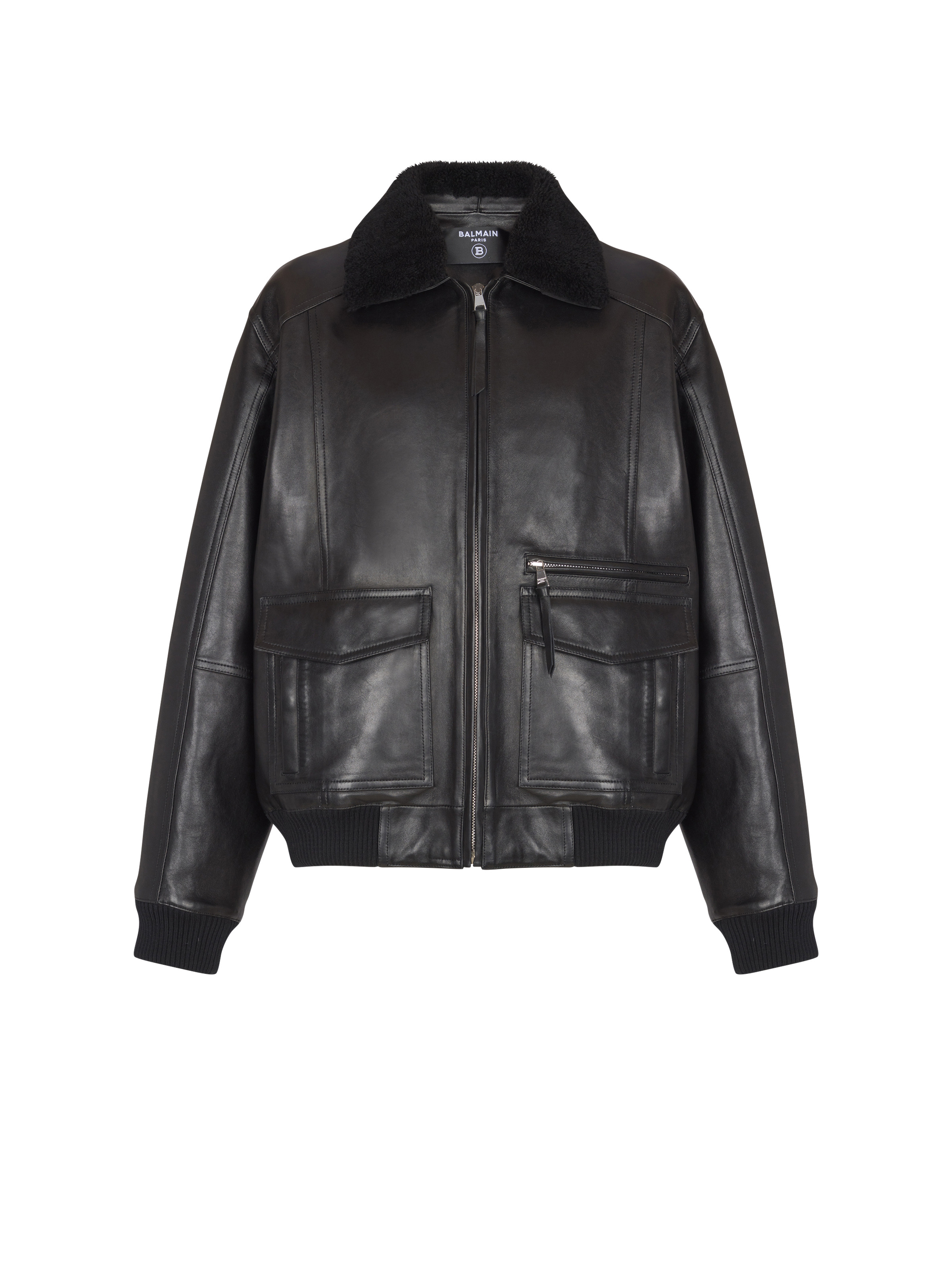 Lambskin aviator bomber jacket - Shearling collar - Long sleeves - Patch flap pockets and welt zip side pockets - Ribbed edging - Relaxed fit - Model measures 191cm and wears a size 48 - Main material: 100% lambskin - Made in Turkey - Item: FH0TF998LC62