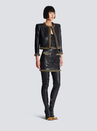 Lambskin edge-to-edge jacket with chain trim - Round neckline - Textured trim with braided chains and eyelets - Structured shoulders - Long sleeves - Inside slash pocket - Twill lining - Cropped fit - Model measures 178cm and wears a size 36 - Main material: 100% lambskin - Made in Turkey - Item: EF0SK776LC62