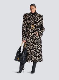 Leopard print jacquard belted trench