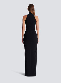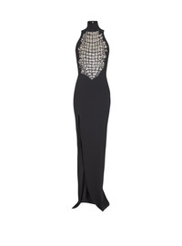 Long slit halterneck dress - Bodice embroidered with beads and stones in a crocodile design - High neck - Invisible zip fastening on the back with Balmain Paris-engraved slider - Front slit - Lined - Fitted cut - Model measures 180cm and wears a size 36 - Main material: 75% viscose 17% polyamide 8% elastane - Made in India - Item: FF0RP001PD24