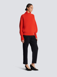 Mohair jumper with a high scarf-style collar - Asymmetric collar with built-in "scarf" for tying around the neck - Long batwing sleeves - Ribbed trim - Balmain Paris plaque - Ribbed knit - Oversized fit - Model measures 179cm and wears a size 36 - Main material: 70% mohair 30% silk - Made in Italy - Item: FF0KK040KI99