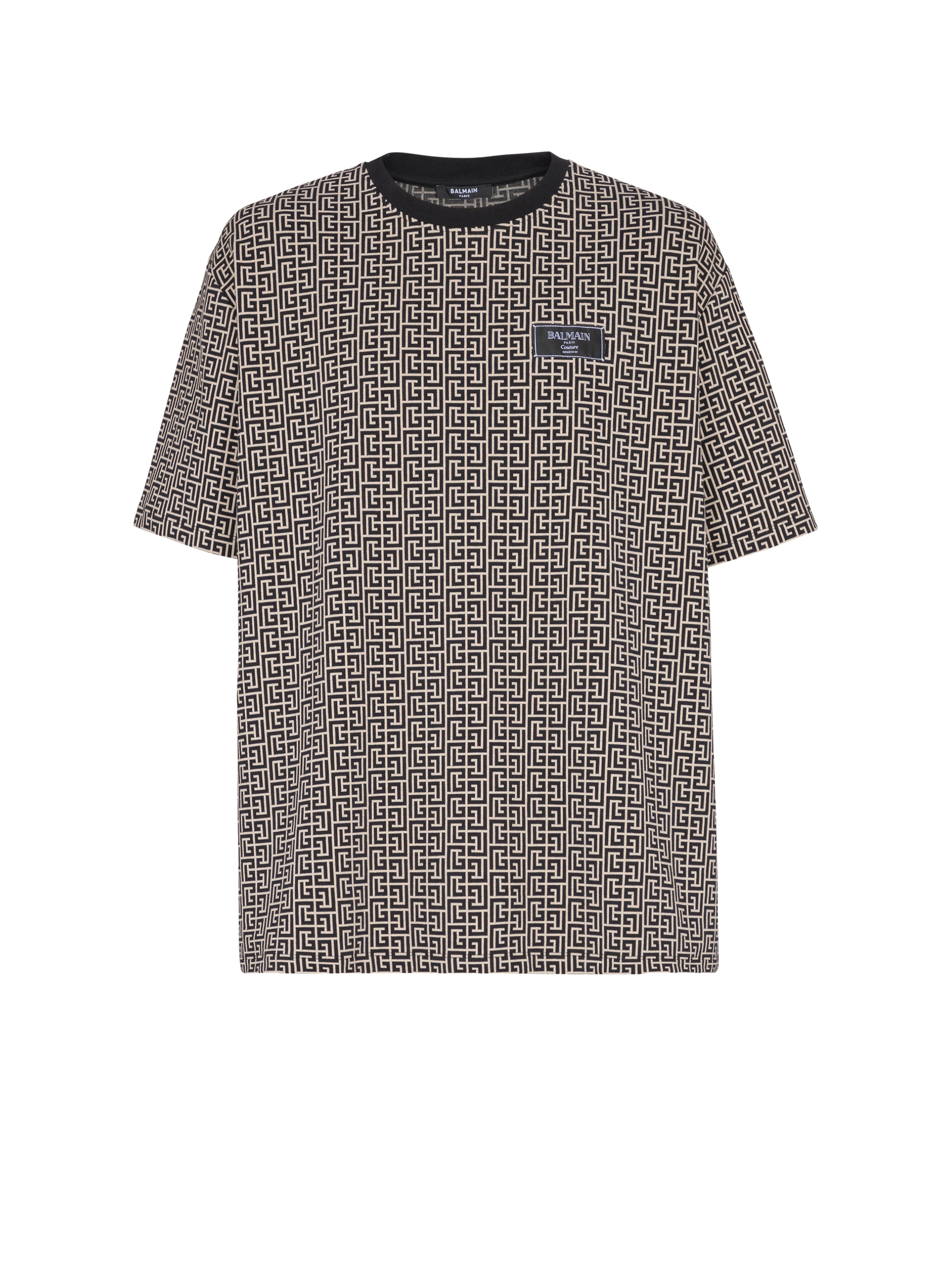 PB Labyrinth jacquard T-shirt - Round neck with contrasting ribbed trim - Short sleeves - Woven Balmain Couture label on the chest - Regular fit - Model measures 190cm and wears a size M - Main material: 95% cotton 5% elastane - Made in Portugal - Item: FH1EG000BC90100% of the cotton fibres used to make this garment are certified and organically farmed