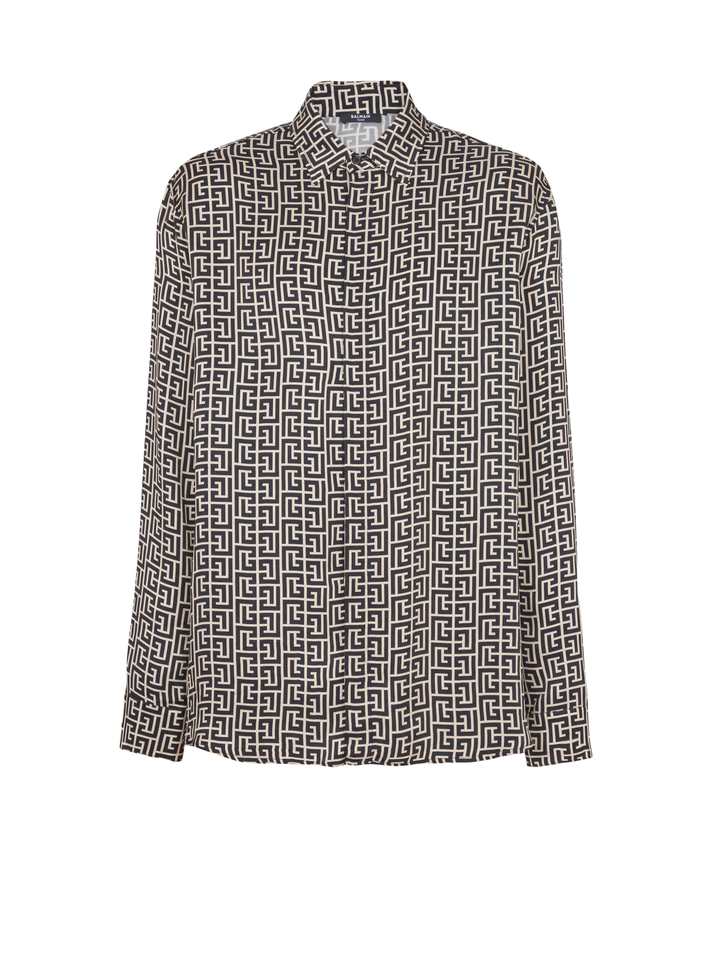Flowing shirt with PB Labyrinthe monogram - Shirt collar - Long sleeves - Straight cuffs with 2 engraved buttons - Fastening with 7 engraved buttons (6 under the placket) - Rounded hem - Relaxed fit - Model measures 190cm and wears a size 48 - Main material: 100% cupro - Made in Italy - Item: FH1HS485VI36