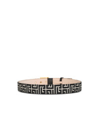PB Belt in monogrammed jacquard - Adjustable - Balmain gold metal buckle - High waist - Comes with a protective cover - Main material: 84% cotton, 16% polyester - Made in Italy - Item: CN1WJ084TJMA