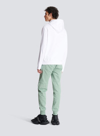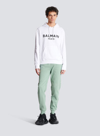 Printed Balmain Paris hoodie - Relaxed fit - Round neck - Drawstring-adjustable hood - Long sleeves - Contrasting Balmain Paris logo printed on the front - Kangaroo pocket - Engraved silver aglets, eyelets and stoppers - Ribbed edging - Model measures 190 cm and wears a size M - Main material: 100% cotton - Made in Portugal - Item: DH1JR002BB65100% of the cotton fibres used to make this garment are certified and organically farmed
