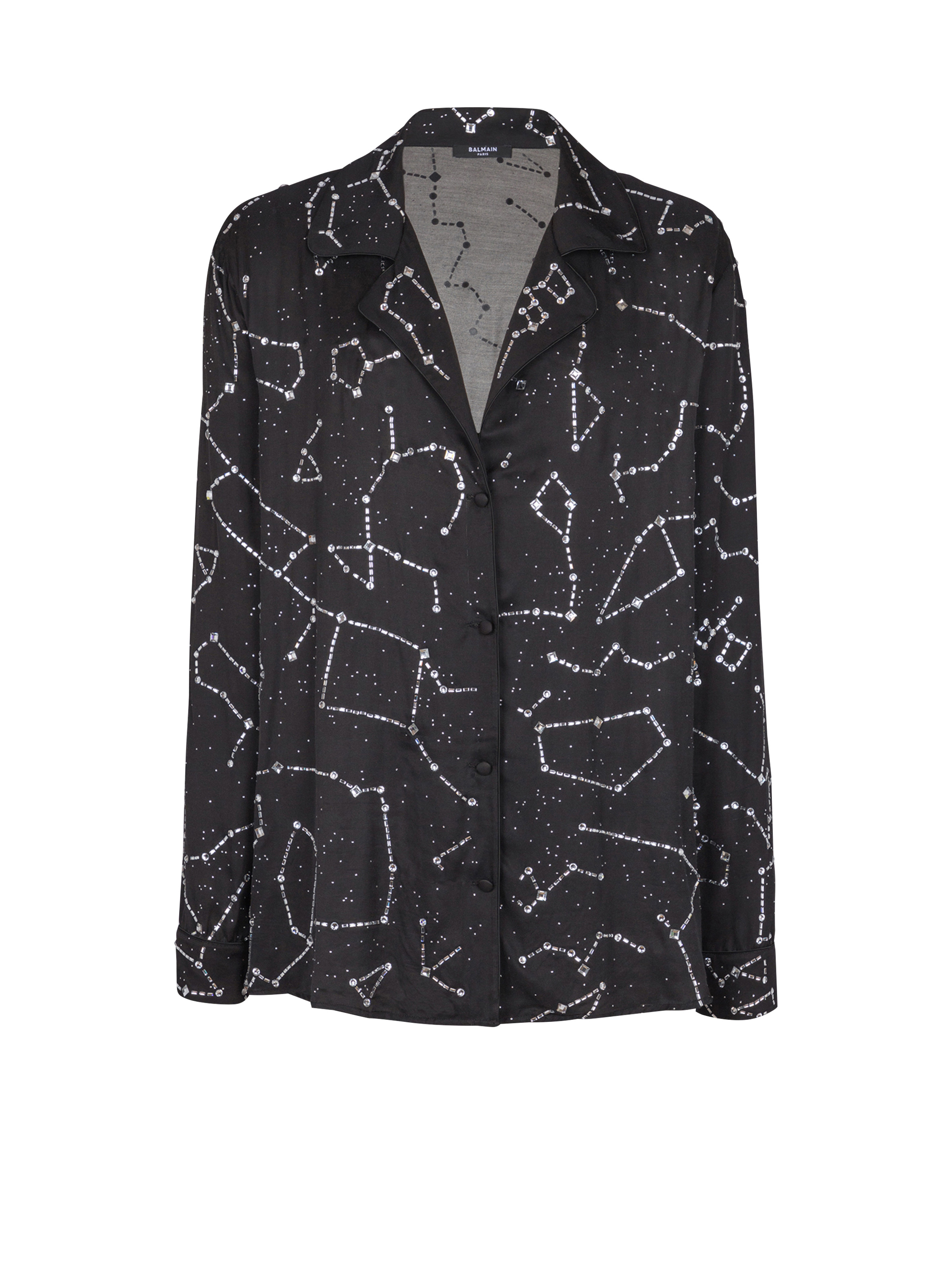 Pyjama shirt with Constellation rhinestones - Shirt collar - Long sleeves - Fastening with 4 covered buttons - All-over rhinestone Constellation motif - Finished with piping on the front - Relaxed fit - Model measures 188cm and wears a size 48 - Main material: 100% viscose - Made in Italy - Item: EH0HU270VG21