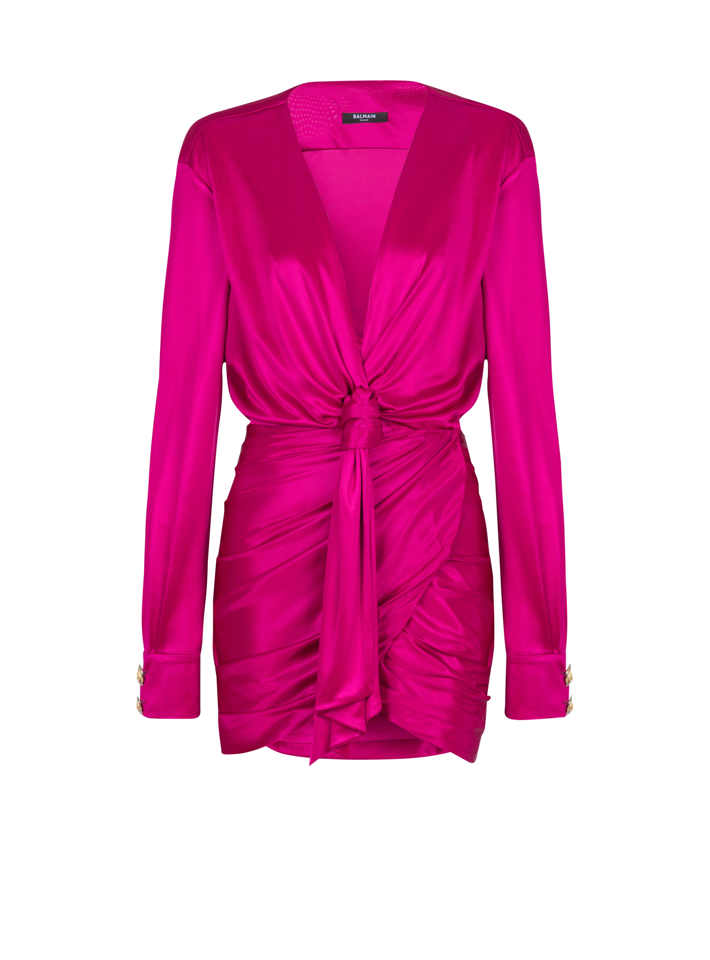 Draped interlock jersey dress - V-shaped neckline - Long sleeves - Straight cuffs with 2 metal “Gold and Gold Coin” buttons - Draped skirt with wrap effect at the front - Invisible side zip fastening - Cropped slim fit - Model measures 178cm and wears a size 36 - Main material: 100% viscose - Made in France - Item: FF1R9323JK74