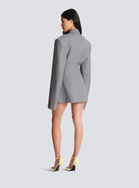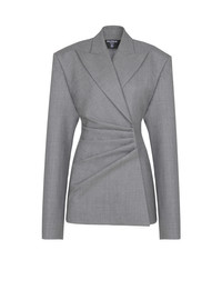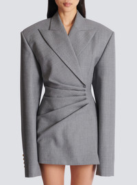 Jacket dress in draped wool - Italian tailored collar - Long oversized sleeves - Straight cuffs with 5 gold metal "Lion Head" buttons - Asymmetrical fastening - Straight tailored fit - Model measures 175cm and wears a size 36 - Main material: 100% virgin wool - Made in Bulgaria - Item: GF1R9409WD39