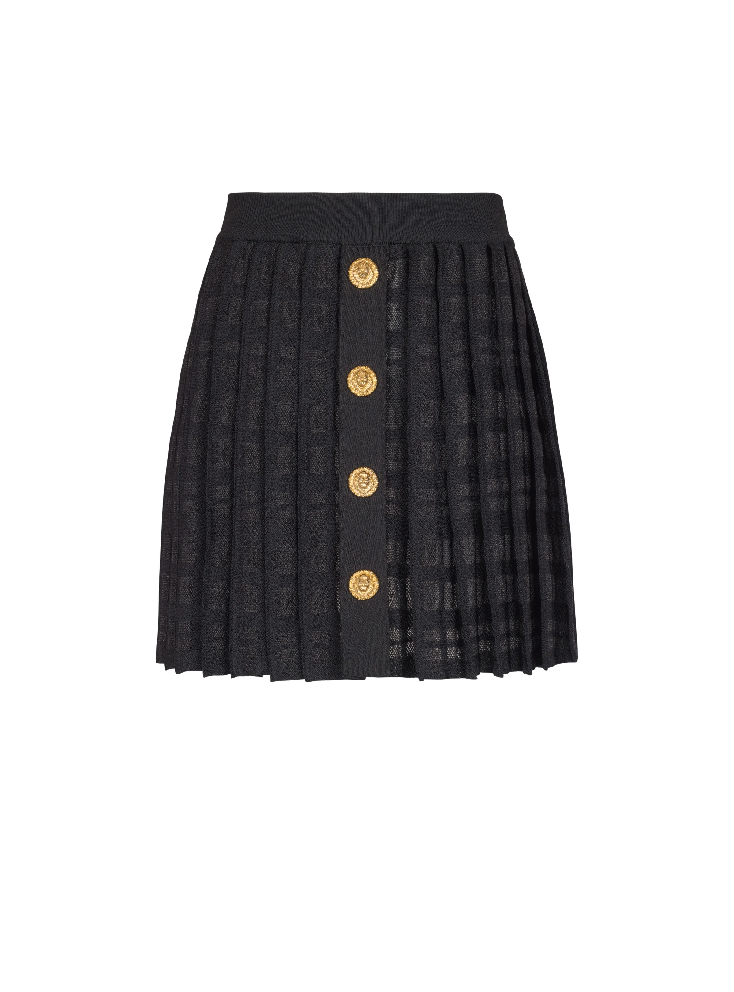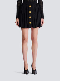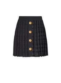 Short pleated skirt in plaid knit - Waistband - Decorative "Lion Head" buttons on the front - Visible zip fastening on the back with Balmain Paris-engraved slider - Flared cut - Model measures 180cm and wears a size 36 - Main material: 77% viscose 14% polyester 8% polyamide 1% elastane - Made in France - Item: GF1LB664KJ34100% of the viscose fibres used to make this garment come from certified, sustainably managed forests
