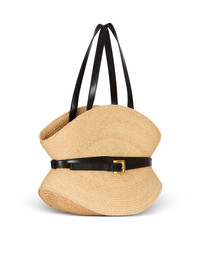 Shuffle Medium bag in calfskin leather and raffia - Belted style - Carry in the hand or wear on the shoulder - Leather handles - Double-wrap belt - Metal PB-engraved buckle - Leather tie fastening - Inside leather pocket and card pocket - Faux suede lining - Gold hardware - Dimensions: 16 x 45.5 x 31 cm - Main material: 100% raffia - Made in Italy - Item: FN1DQ023TRBO