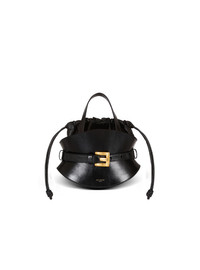 Shuffle Mini bag in calfskin leather - Belted style - Carry in the hand, on the shoulder or across the body - Adjustable and detachable leather shoulder strap with stud buttons - Leather handles - Belt with metal PB-engraved buckle - Embossed gold Balmain Paris logo on the front - Inside bag with drawstring ties - Fastening with adjustable leather tie - Leather lining - Gold hardware - Dimensions: 10 x 23 x 13 cm - Main material: 100% calfskin - Made in Italy - Item: FN0DP017LMTE