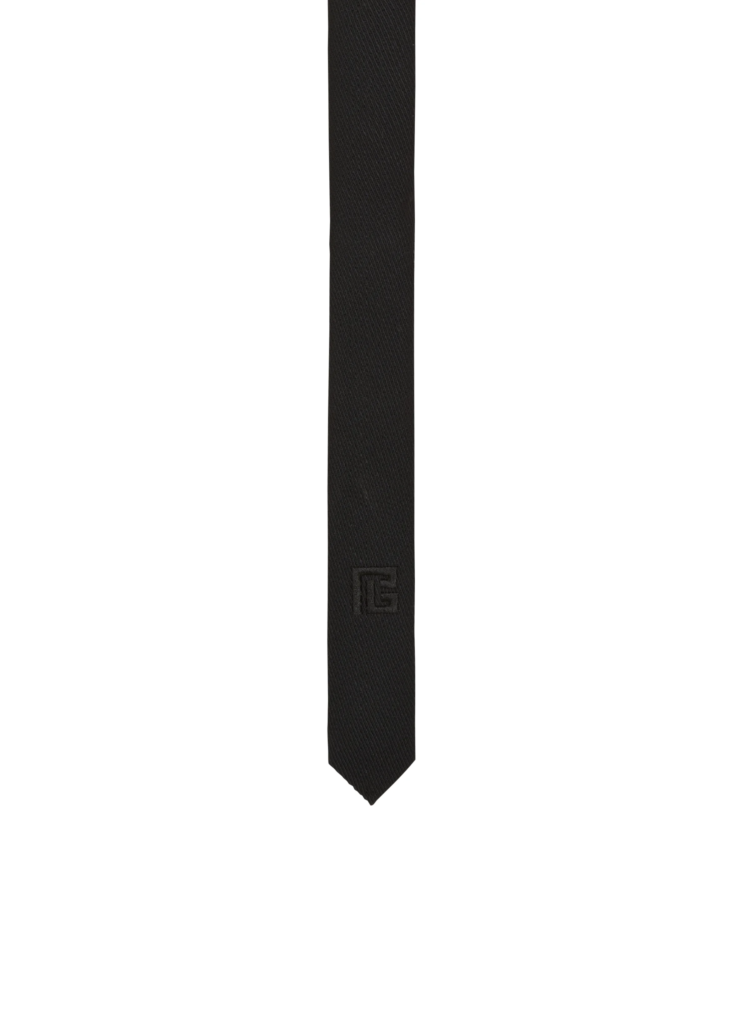 Slim wool tie with PB embroidery