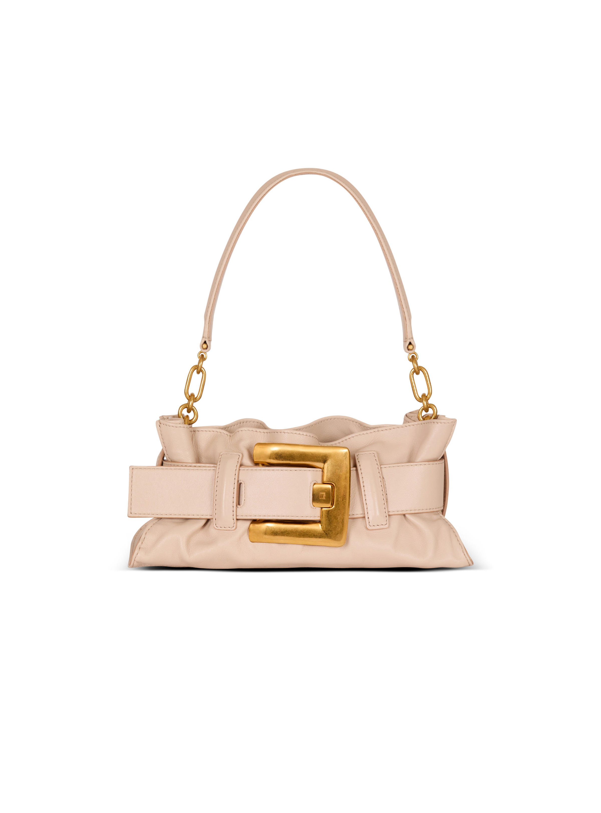 Small Anthem Shoulder bag in calfskin - Soft belted style - Carry in the hand or wear on the shoulder - Detachable chain and leather handle - Leather belt and belt loops - Metal PB-engraved buckle - Metal PB logo on the back - Magnetic fastening - Embossed leather inside card pocket - Gold hardware - Dimensions: 30.5 x 11.5 x 10 cm - Main material: 100% calfskin - Made in Italy - Item: EN0AE994LMXL