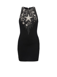 Short dress embellished with shooting stars - Star pattern bib front embroidered with crystals, glass beads and silver micro-sequins - Long, tight fit - Round neck - Sleeveless - Fastening with black metal zip at the back - Model measures 180cm and wears a size 36 - Main material: 90% Viscose 9% Polyamide 1% Elastane - Made in France - Item: CF1R4001PC18100% of this item’s ENKA® viscose fibres are sourced from FSC®-certified sustainably-managed forests