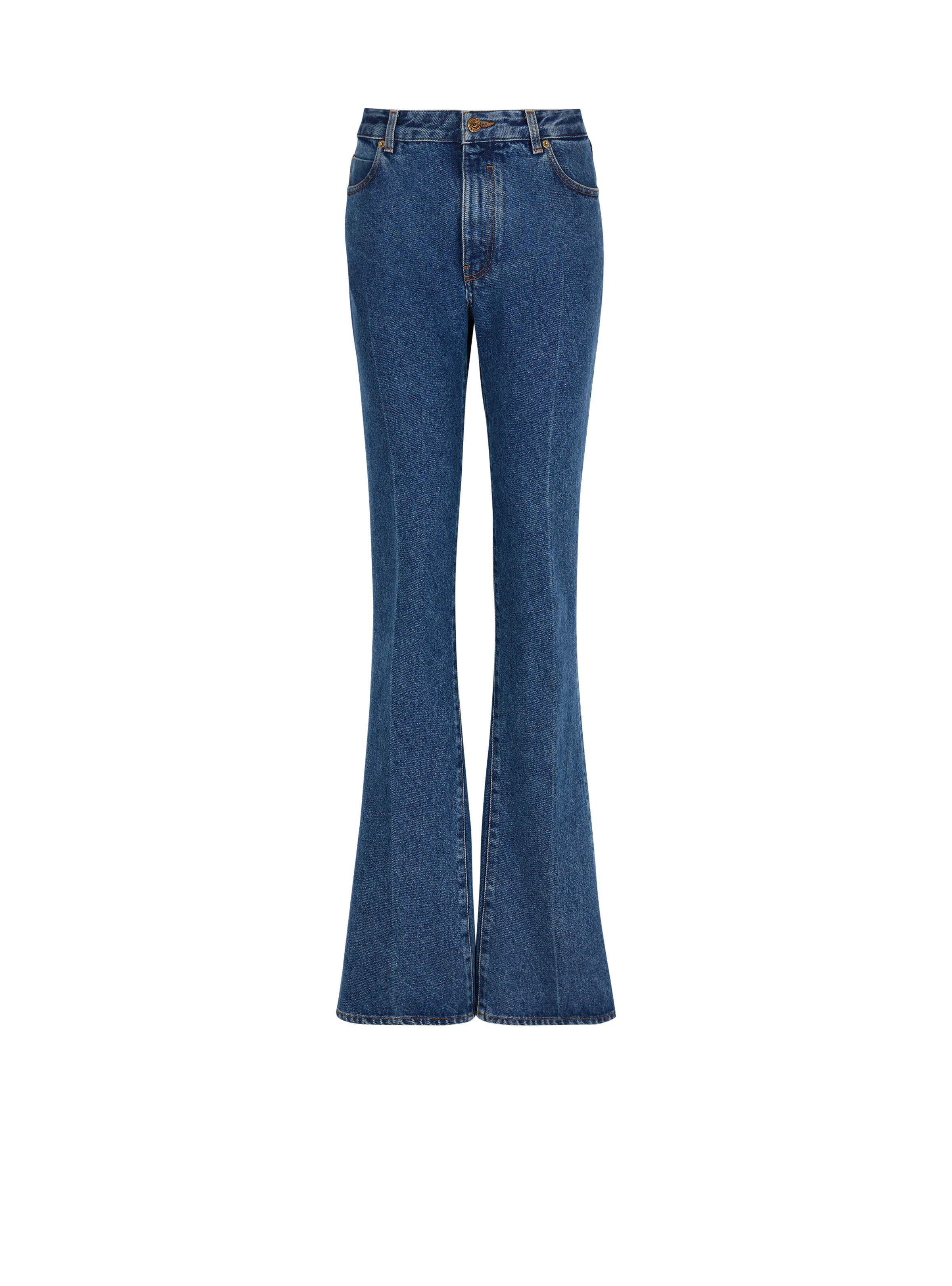 Dark blue denim jeans - 5 classic pockets - Belt loops at the waist, zip fly and "PB Balmain" button - PB embroidery on the back pocket and printed leather Balmain Paris patch - High waist - Straight cut - Model measures 177cm and wears a size 36 - Main material: 100% cotton - Made in Romania - Item: GF1MI070DG08100% of the cotton fibres used to make this garment are certified and organically farmed