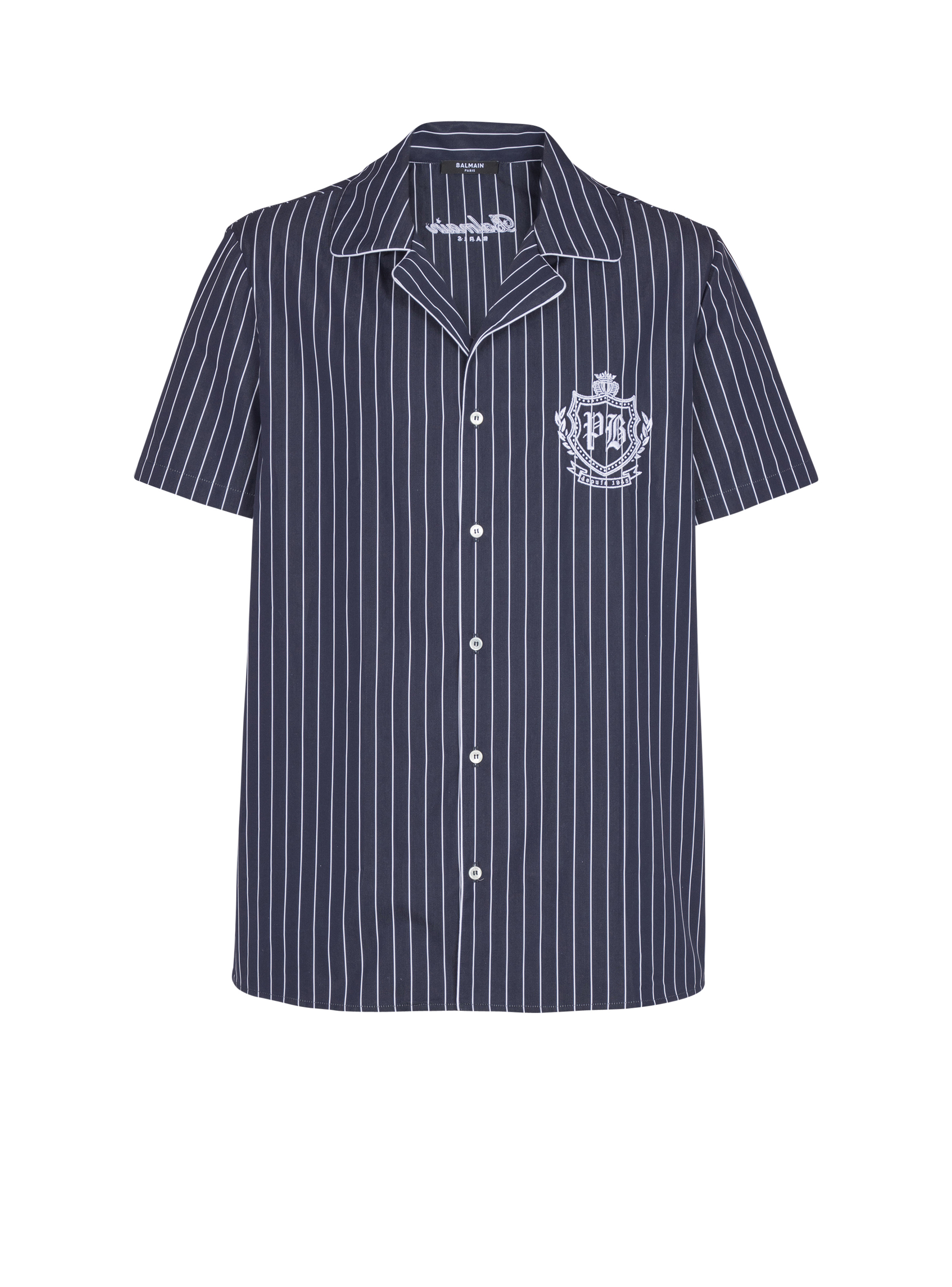 Striped pyjama shirt - Shirt collar - Short sleeves - College Emblem embroidery on the chest - Button fastening - Relaxed fit - Model measures 190cm and wears a size M - Main material: 100% cotton - Made in Moldova - Item: FH0HN137CG33