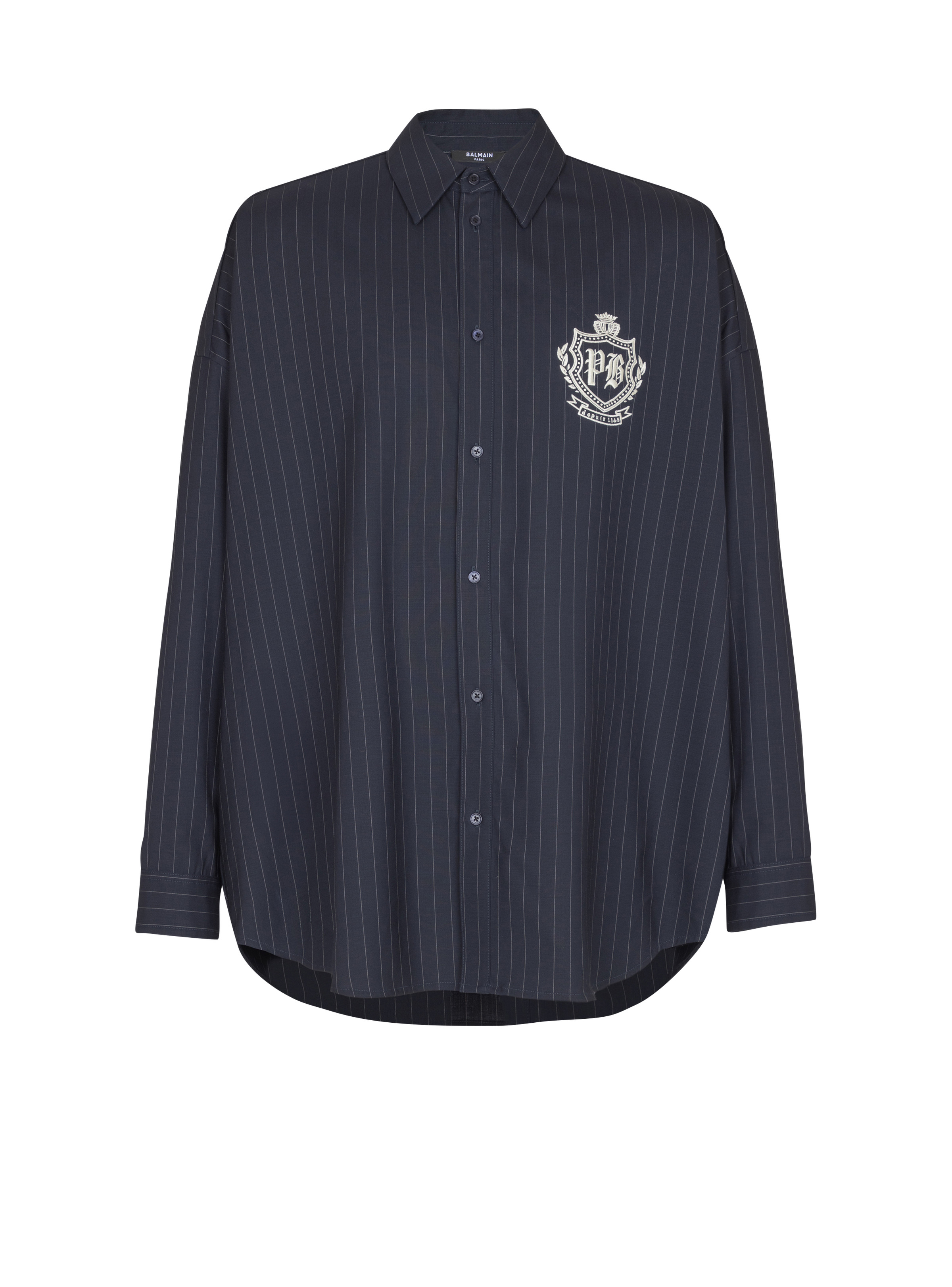 Striped wool shirt - Shirt collar - Long sleeves with straight cuffs - College Emblem logo printed on the chest - Button placket fastening - Boxy fit - Model measures 186cm and wears a size 39 - Main material: 98% virgin wool 2% elastane - Made in Italy - Item: FH0HS500WD25100% of the wool fibres used to make this garment are sourced from sheep farms that are certified and animal welfare-friendly