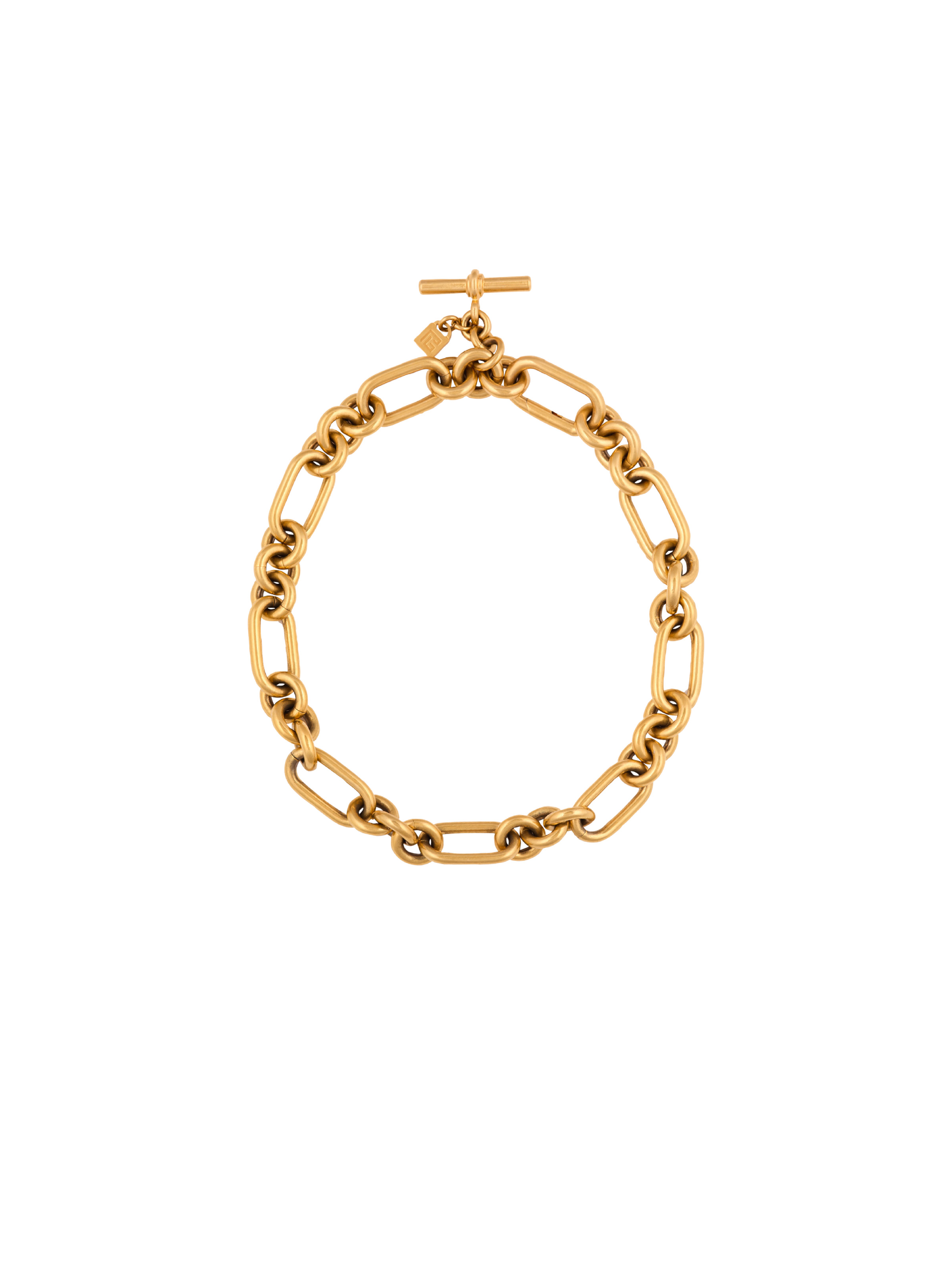 Sync golden brass chain - Designed to be worn as a necklace or bracelet - Adjustable length - T clasp - Snap hook - Metal PB logo - Main material: 60% aluminium 40% brass - Made in Italy - Item: FN1XA534MALB