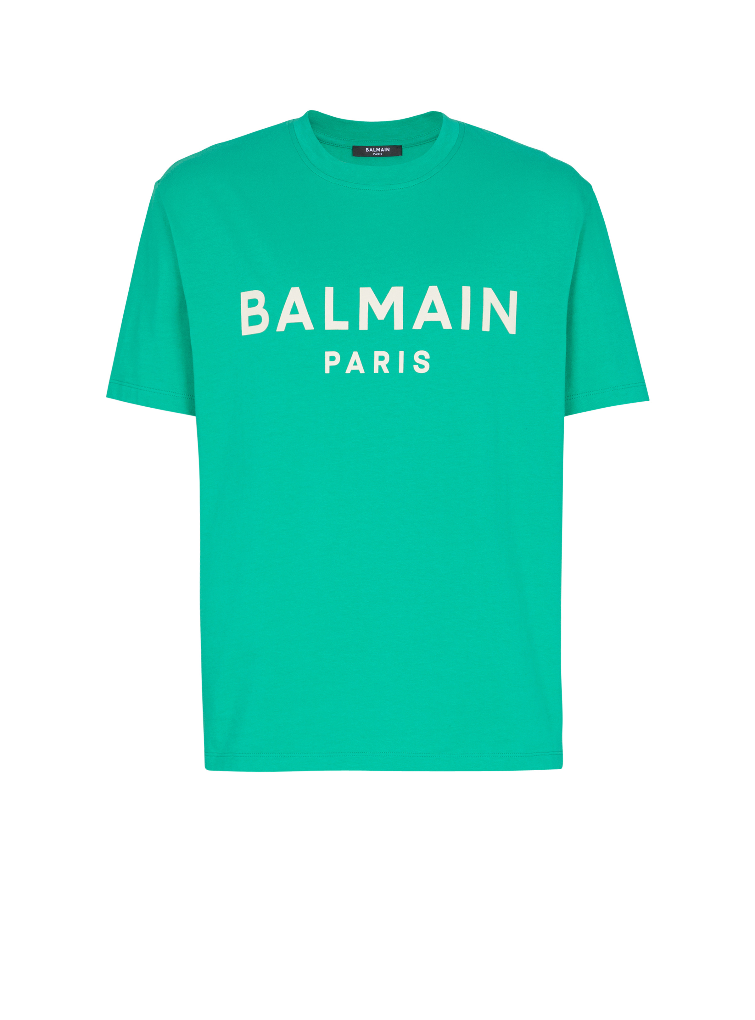 T-shirt with Balmain Paris print - Round neck with ribbed trim - Short sleeves - Contrasting Balmain Paris logo printed on the front - Regular fit - Model measures 190cm and wears a size M - Main material: 100% cotton - Made in Portugal - Item: FH1EG000BB73100% of the cotton fibres used to make this garment are certified and organically farmed