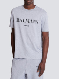 T-shirt with Balmain print - Regular fit - Round neck with ribbed trim - Short sleeves - Vintage Balmain logo printed on the front - Model measures 190cm and wears a size M - Main material: 100% cotton - Made in Portugal - Item: FH2EG000BD33