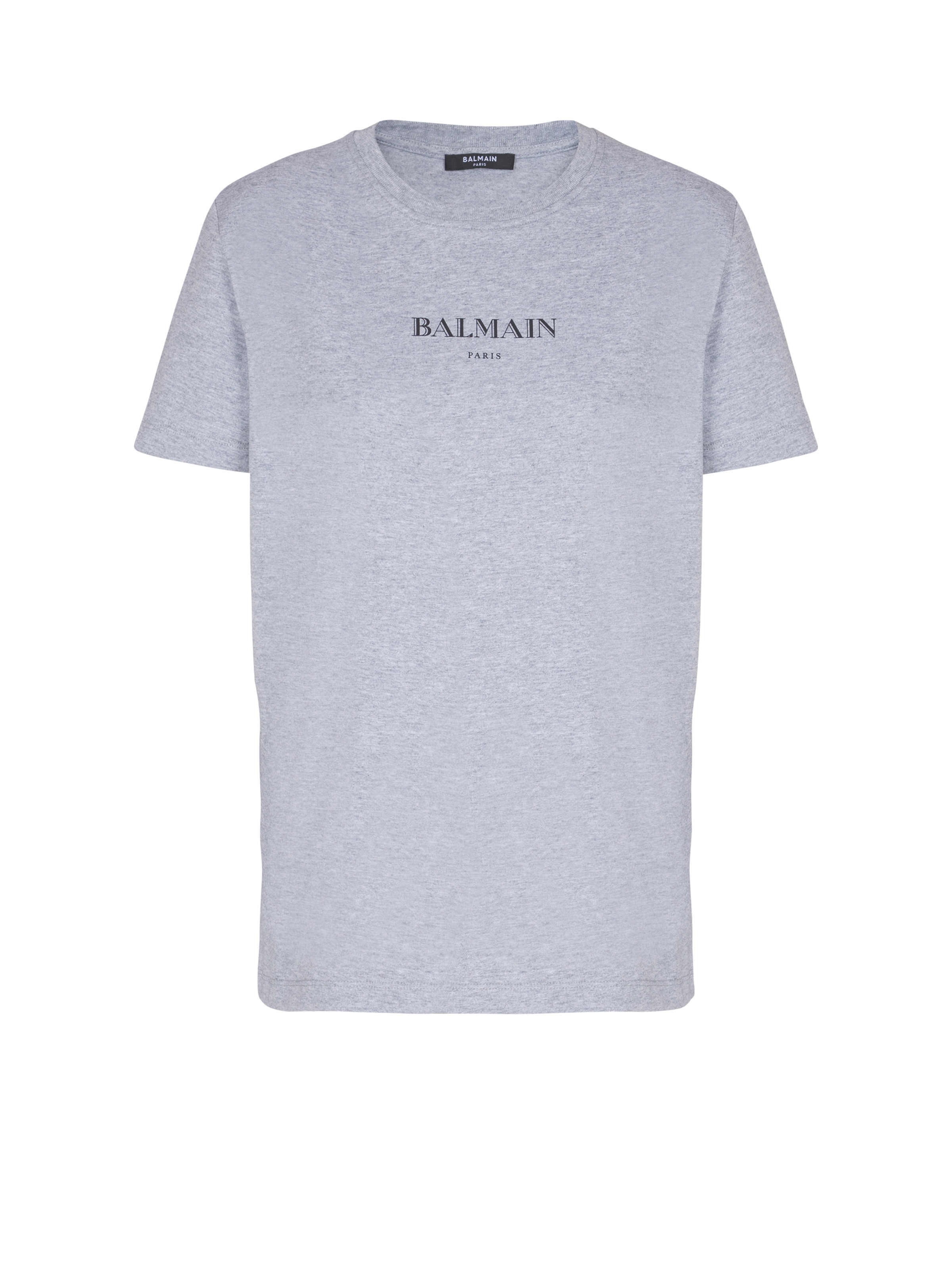 T-shirt with Balmain print - Regular fit - Round neck with ribbed trim - Short sleeves - Contrasting Balmain Paris logo printed on the front - Model measures 178cm and wears a size S - Main material: 100% cotton - Made in Portugal - Item: FF2EF000BD35