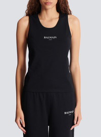 Tank top with Balmain print - Round neckline - Balmain logo printed on the front - Rounded hem - Relaxed fit - Model measures 178cm and wears a size S - Main material: 100% cotton - Made in Portugal - Item: FF2EB075BD36