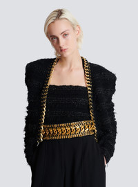 Wide waist belt in braided chains and leather - Braided leather, eyelets and metal chains - Adjustable fastening, 6 metal stud buttons - Gold hardware - Embossed Balmain logo - Width: 7.5 cm - Main material: 100% calfskin - Made in Italy - Item: EN4WJ180LQBA