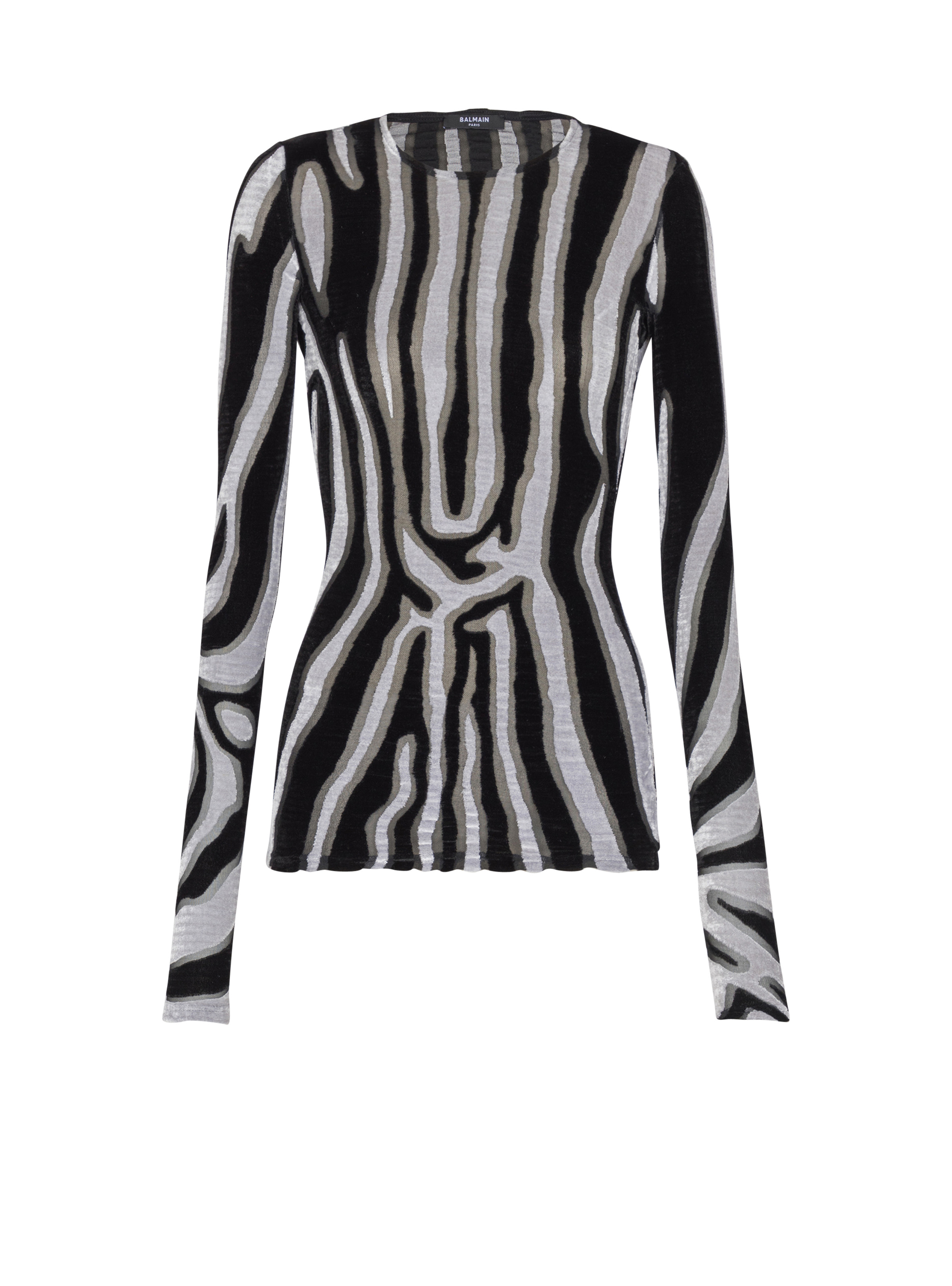 Zebra-print velvet top - High neck - Long sleeves - Jersey with sheer details - Fitted cut - Model measures 180cm and wears a size 1 - Main material: 89% viscose 11% elastane - Made in Bulgaria - Item: FF0AR964JL13