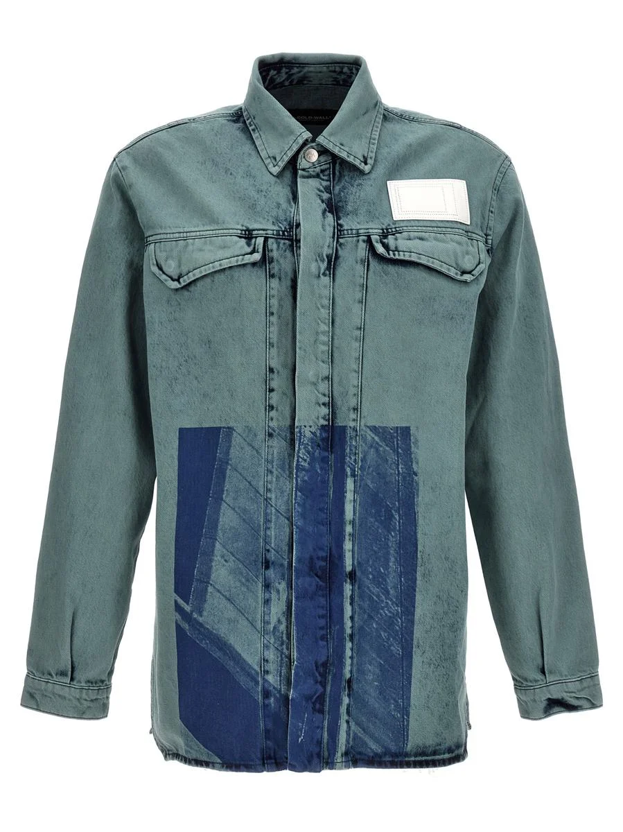 'Bleached Overdyed' cotton denim shirt with back logo print, front print, button closure, pockets, long cuffed sleeves Gender: Men Material: 100% COTTON Color: BLUE Made in: Imported Product ID: ACWMSH136FDTL *Import tax/duty will be calculated at checkout (If applicable)