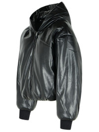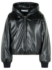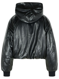 Made of eco leather, wide hood with logo tone metal plate, zip closure, side pockets with snap button, inner welt pocket, viscose lining, ribbed cuffs, elastic hem Gender: Women Material: 100% polyester Color: Black Made in: Imported Product ID: A90654900 *Import tax/duty will be calculated at checkout (If applicable)