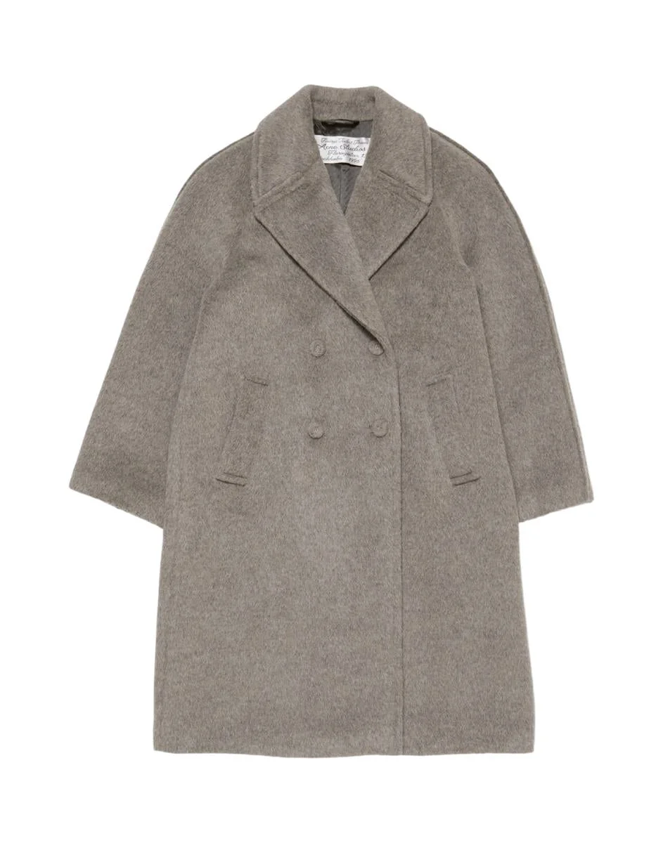 Double-breasted wool coat - Warm Grey Melange