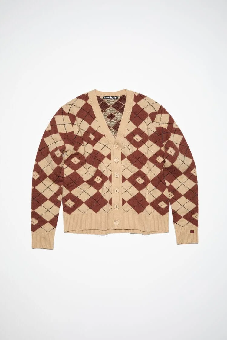 Argyle jacquard cardigan - Biscuit beige/deep red