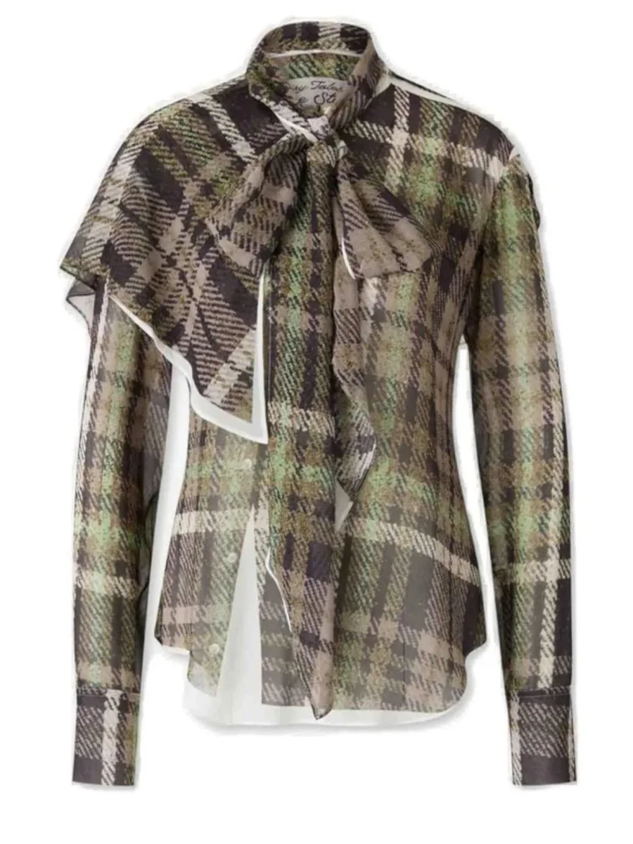 Tie-detailed draped printed silk crepe de chine blouse Multi