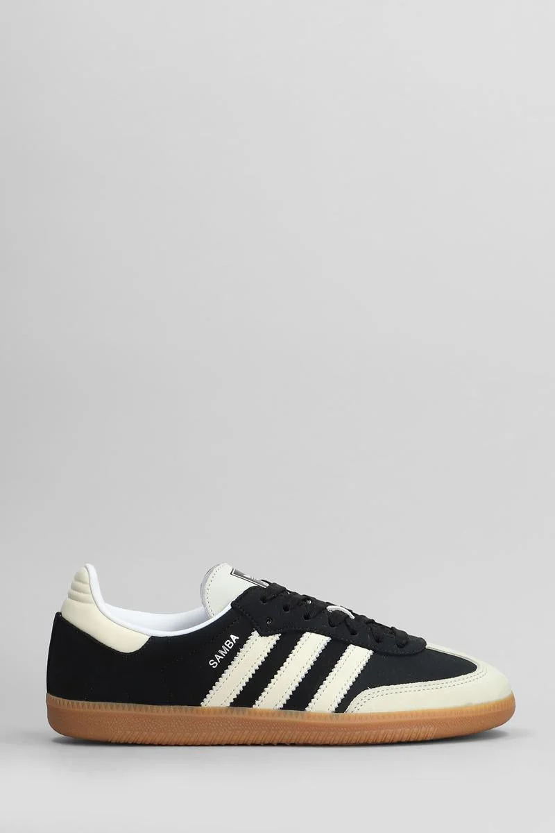 Samba Og Sneakers in black nubuck, laces, logo on upper tongue, logo bands, honey sole, spare laces included, 100% nabuk, Made in Indonesia Unisex Fit: This product follows the Men's size chart. For accurate sizing, please contact our customer support team Gender: Unisex Material: NUBUCK Color: Black Made in: Imported Product ID: 417269_IE5836 *Import tax/duty will be calculated at checkout (If applicable)