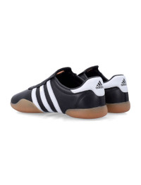 The Adidas Originals Taekwondo Mei shoes offer a sleek reinterpretation of martial arts-inspired style. Crafted from smooth leather with a clean toe and low-profile silhouette, they feature serrated 3-Stripes that extend across the sides and wrap under the sole. The slip-on design ensures ease of wear, while the split rubber outsole provides flexibility and reliable traction. A minimalist sneaker that blends sporty heritage with modern urban appeal. Leather upper Smooth toe Stripped-down design Serrated 3-Stripes extend fully from side to side wrapping under the shoe Slip-on Low-profile Split rubber outsole Gender: Women Material: UPPER 100% LEATHER LINING 100% LEATHER SOLE 100% RUBBER Color: CORE BLACK Made in: Imported Product ID: 25AJQ3012#CBLACK *Import tax/duty will be calculated at checkout (If applicable)