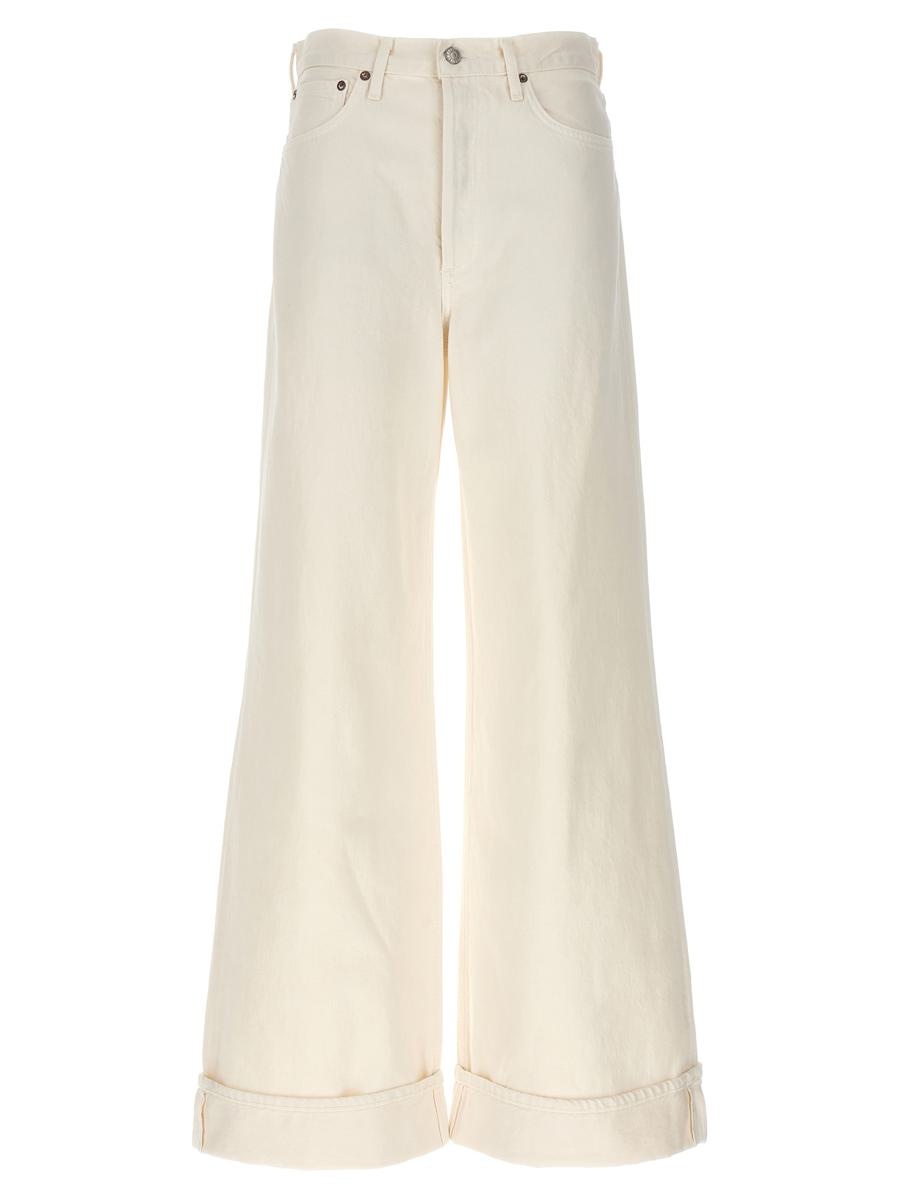 'Dame' cotton denim jeans with button closure, five pockets, high waist style with wide leg and turned-up hem Gender: Women Material: 100% COTTON Color: WHITE Made in: TR Product ID: A91591183FRTCO *Import tax/duty will be calculated at checkout (If applicable)