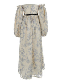 Long dress Blue Bare shoulders Bardot neckline Bardot sleeves Print with all-over floral motif Beaded waistband Flared hem Linen Loose fit Gender: Women Material: 100% LINEN Color: BLUE Made in: CO Product ID: 18035MULTICOLOR *Import tax/duty will be calculated at checkout (If applicable)