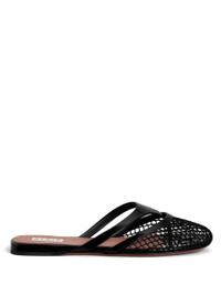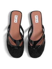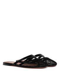 Alaïa Fishnet And Leather Flip Flops Flat Mules Shoes