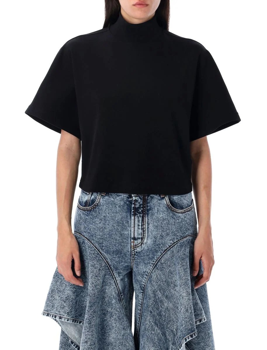 Alaïa High Neck Ribbed Cotton T-Shirt