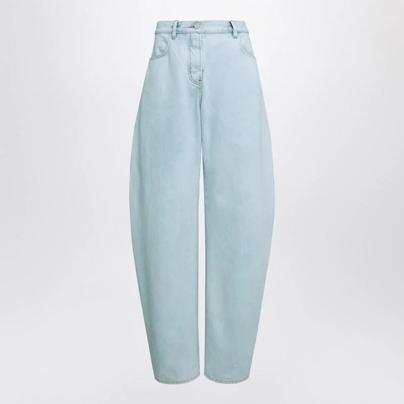 Ice blue cotton denim jeans by Alaia featuring belt loops, five classic pockets, front zip and button closure, low waist, contrast tobacco stitching, and rounded design Gender: Women Material: 99% Cotton - 1% Polyurethane Color: BLUE Made in: Italy Product ID: AA9P1215D005BDE/R_ALAIA-523 *Import tax/duty will be calculated at checkout (If applicable)