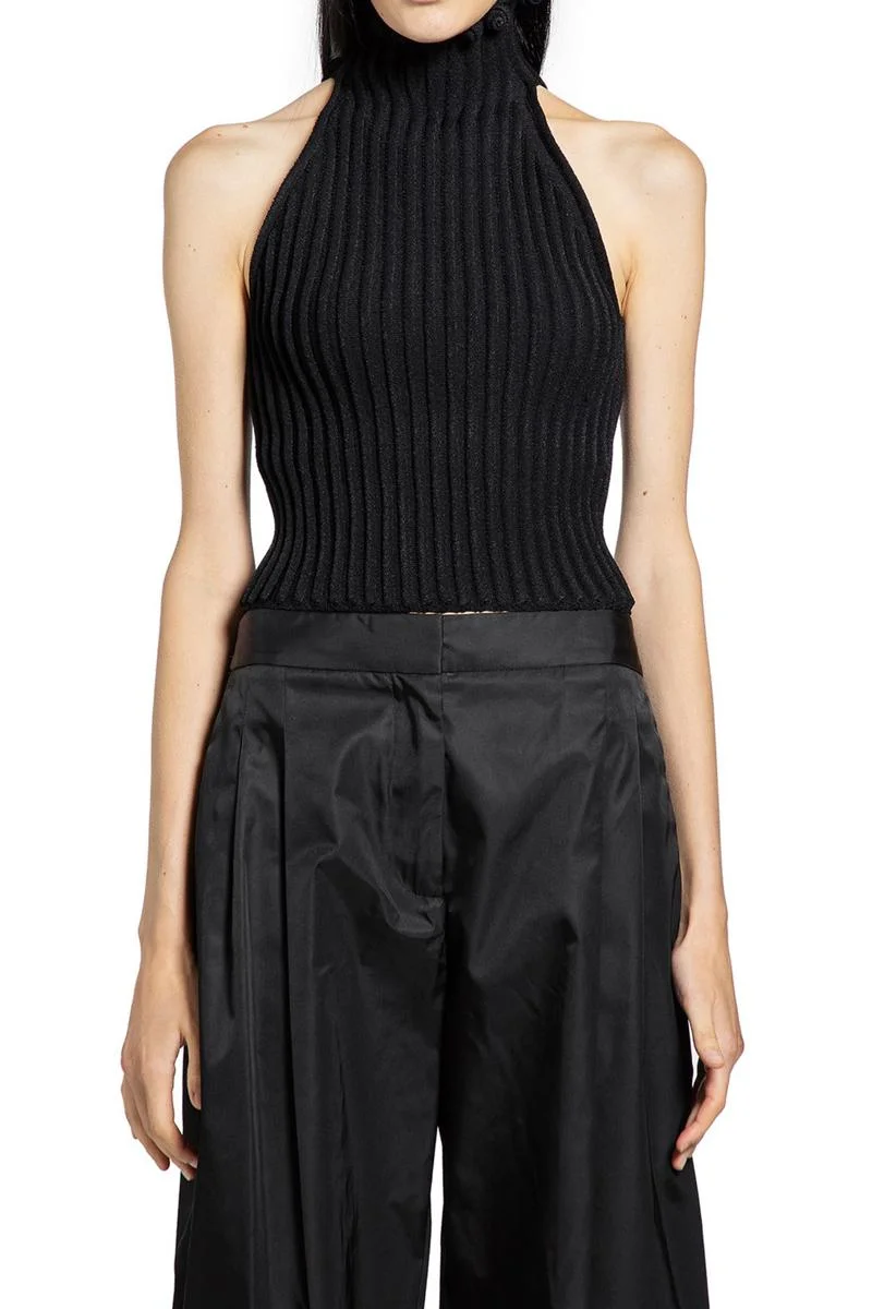 RIBBED KNIT HALTER TOP WITH WAVY FINISH