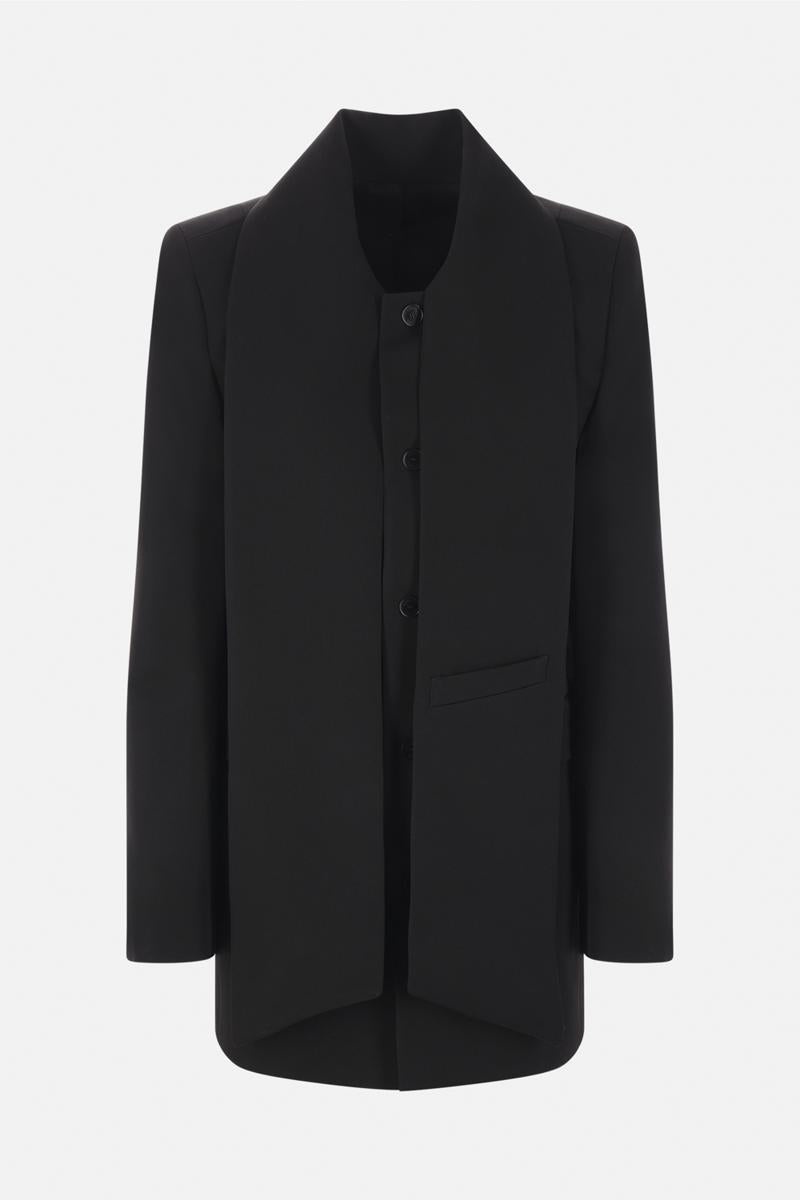 Alainpaul single-breasted jacket made of black wool. Featuring crew neck with lavalliere, front button closure, padded shoulders, flap pockets, long sleeves with buttoned cuffs, back central vent and lined interior. Gender: Women Material: 100% WOOL / LAINE // LINING / DOUBLURE 100% VISCOSE Color: Black Made in: PT Product ID: S2WJA02BLACK *Import tax/duty will be calculated at checkout (If applicable)